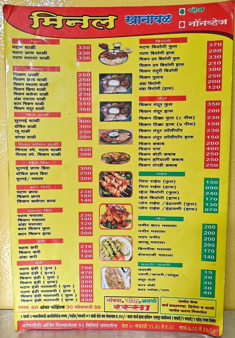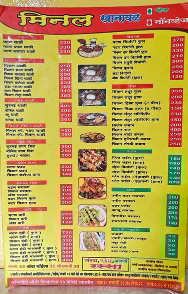 Welcome to Minal Khanawal, a popular Maharashtrian restaurant located in Pune. We bring you the true taste of Maharashtra with a mix of both traditional and modern flavours. Our menu is crafted with love, offering a wide variety of veg and non-veg thalis, chicken, mutton, fish, tandoori dishes, biryanis and special fry items.